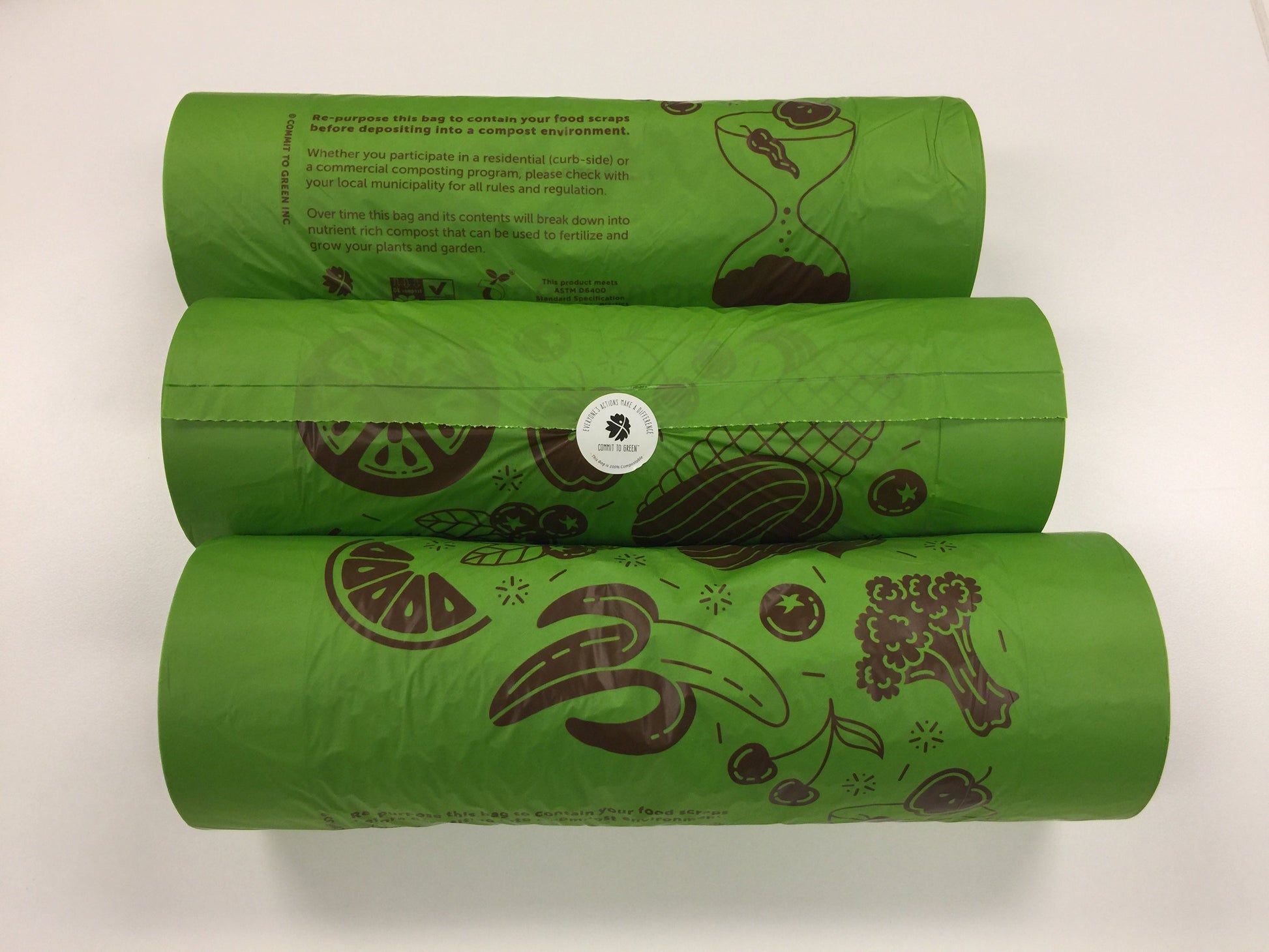 - No additives. Bags are consumed by microorganisms in a composting environment